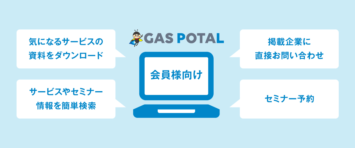 会員は、サービスやセミナーの検索に加え、GAS POTAL上から直接資料をダウンロードできます。