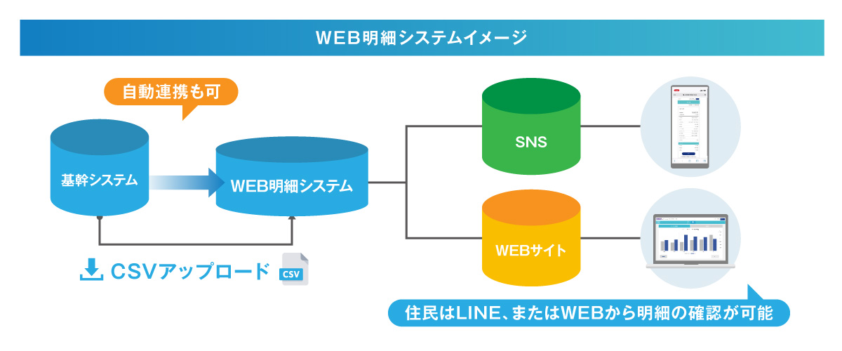 CSVアップロードに対応しているため、既存の基幹システムに対する大規模な改修は不要です。自治体の負担を最小限に抑えながら、スムーズな導入が可能です。