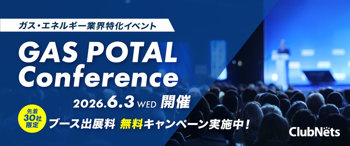 株式会社クラブネッツ(本社:東京都渋谷区、代表取締役社長:芦名 真也)は、ガス・エネルギー業界特化型のリアルカンファレンス「GAS POTALカンファレンス2026」を、2026年6月3日(水)に東京国際フォーラムにて開催いたします。