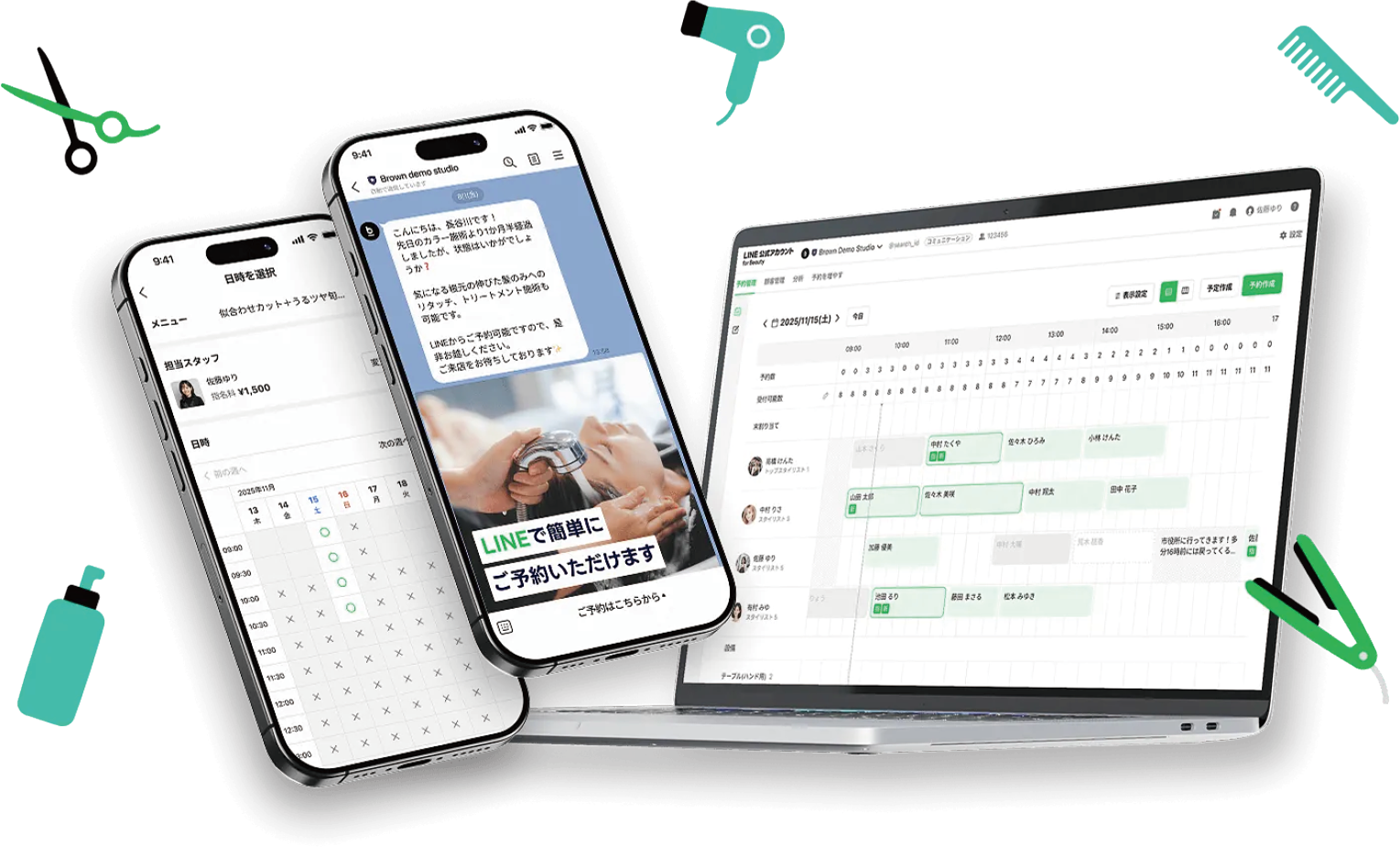 ヘアサロンに関わる多くの業務をLINEに集約することで、お客様もスタッフもストレスなく利用することができます。