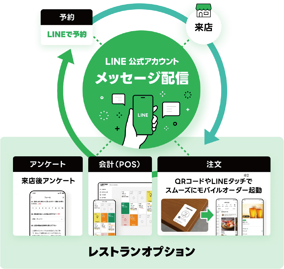 飲食店の運営に必要な機能を、国内で月間1億人(※1)以上が使うLINEに集約。