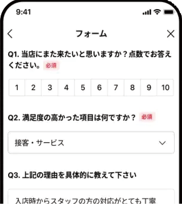 | データ収集 | 回答が顧客と紐づかない | アンケート機能を活用して顧客の声を集められる |
